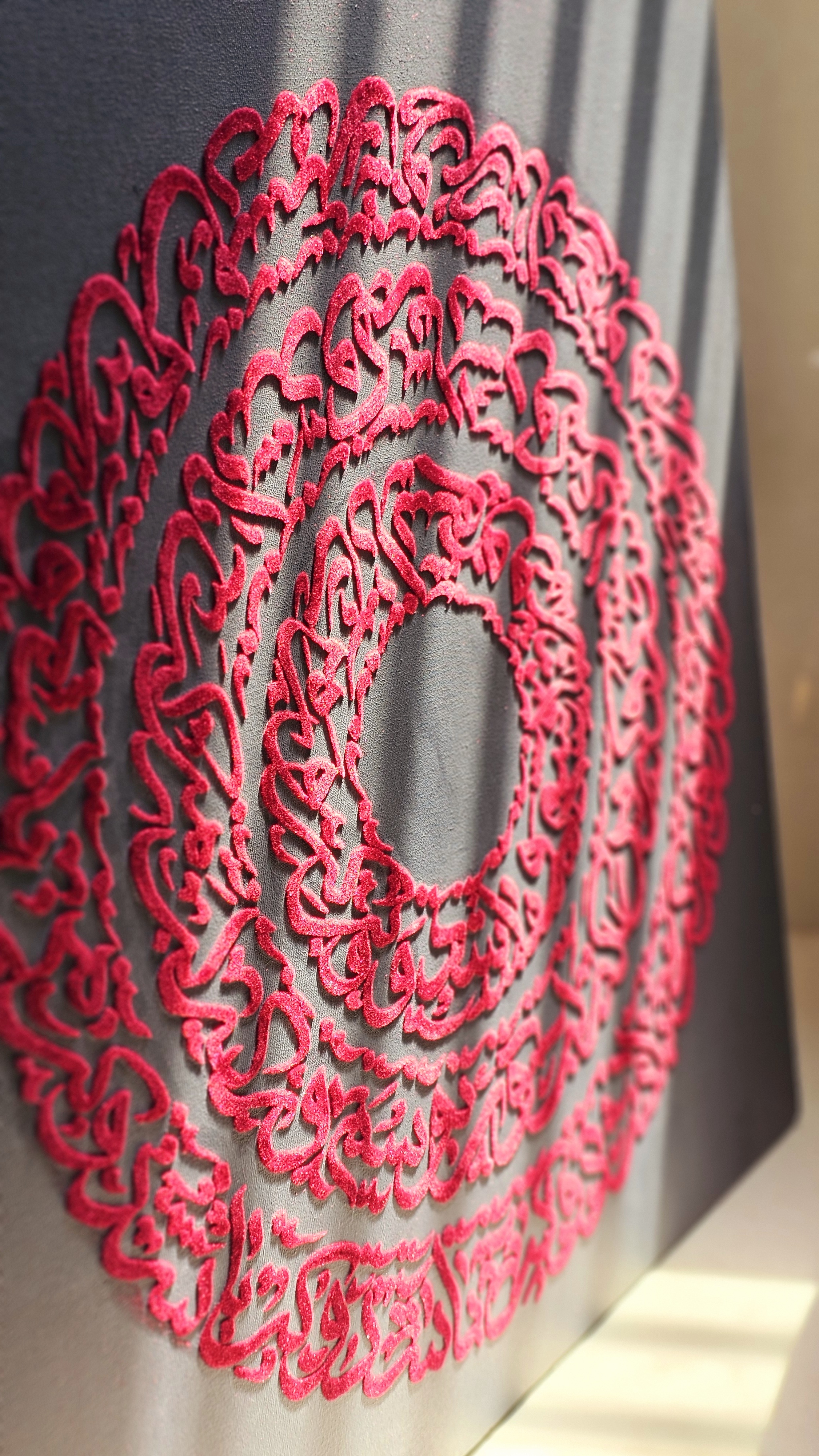 تابلو مخمل / ابعاد : ۶۰ ×۶۰/ متن :من باشم و وی باشد و مِی باشد و نِی
